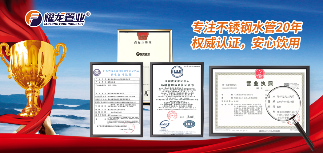 廣東耀龍金屬科技有限公司是一家從事不銹鋼水管、不銹鋼工業(yè)焊管、管件制造與銷售的綜合型企業(yè),總部位于佛山市,在廣東佛山和江蘇南通都有現(xiàn)代化的生產(chǎn)基地,年生產(chǎn)能力達15000噸以上。 公司已通過IS09001國際質(zhì)量體系認證、ISO14001環(huán)境管理體系認證、AD2000認證、涉水產(chǎn)品衛(wèi)生許可證(管材和管件)、歐盟PED、0HSAS18001職業(yè)健康安全管理體系認證、高新技術(shù)企業(yè)證書。配備有光譜分析,在線渦流探傷,金相檢驗,水壓試驗,水下氣密試驗,“X”射線,機械性能試驗等檢測設(shè)備。 公司秉承“品質(zhì)鑄就品牌,創(chuàng)新引領(lǐng)未來”的經(jīng)營理念,實行“以市場為導(dǎo)向,以人才為紐帶,以資本為后盾,以品牌為龍頭”的發(fā)展戰(zhàn)略,以人為本,科學(xué)創(chuàng)新,致力打造世界一流品牌。